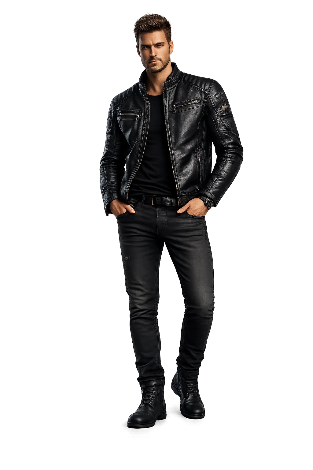 Precision tailoring. Powerful silhouettes. Timeless leather crafted for men who lead with confidence. From structured biker jackets to refined modern cuts, each piece is designed to elevate your presence — whether in the city or beyond.