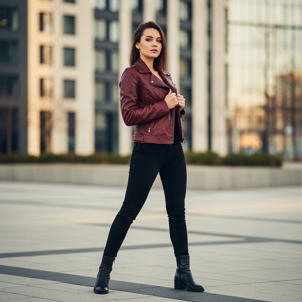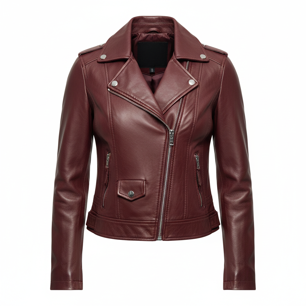 1 review for Women’s Deep Burgundy Leather Jacket – Bold Luxe Slim Fit Edition